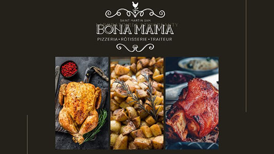 Bona Mama, is an Italian-style pizzeria-rôtisserie-caterer concept restaurant including take-out.
